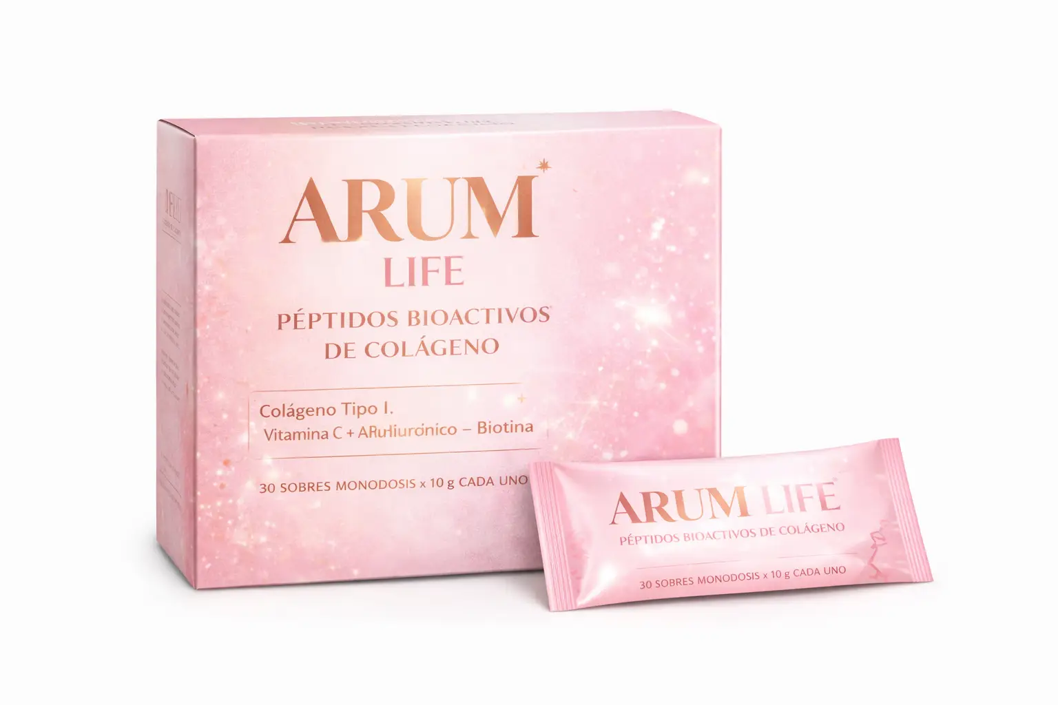 ARUM LIFE Péptidos de Colágeno es un suplemento diseñado para mejorar la salud y apariencia de la piel, el cabello y las uñas, apoyando los procesos naturales de regeneración cutánea. Su fórmula combina péptidos bioactivos de colágeno y vitaminas esenciales, favoreciendo una piel más firme, hidratada y visiblemente rejuvenecida.